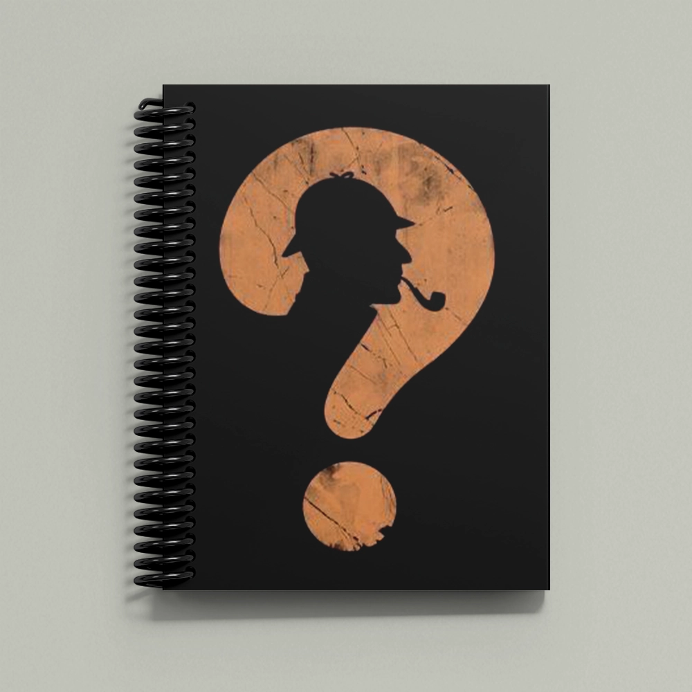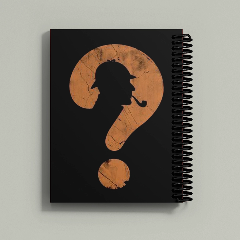 صورة المحقق داخل علامة استفهام على الغلاف. مثالي لحل الألغاز، كتابة النظريات، أو تأليف جريمة بوليسية جديدة!