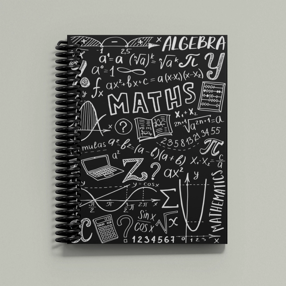 تصميم سبورة مليان معادلات ورسومات بيانية وصيغ جبرية أساسية. مناسب للطلاب وعشّاق الرياضيات.