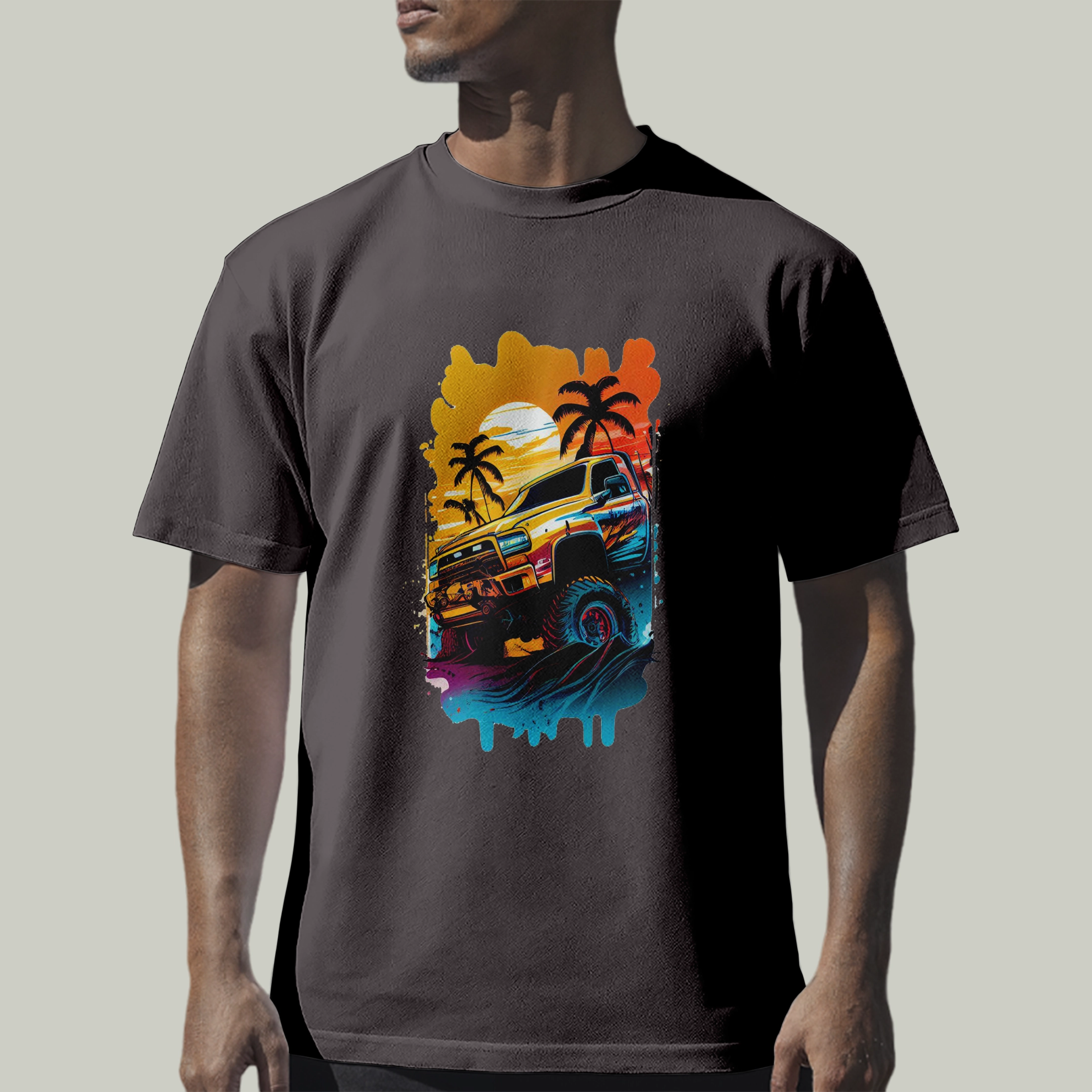 لو بتحب الجرافيك ستايل وتفاصيل الجيمز، التيشرت ده ليك! تصميم سيارة مطبوعة على الصدر برسومات مستوحاة من GTA، تيشرت قطن عالي الجودة.