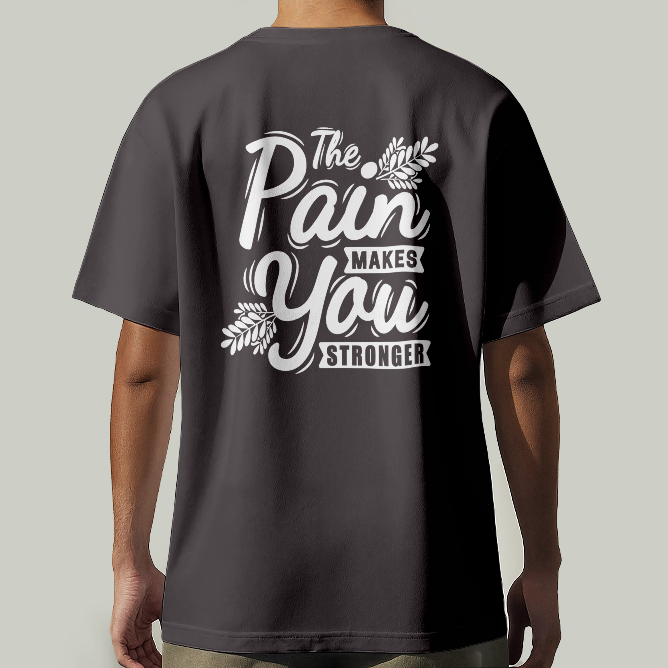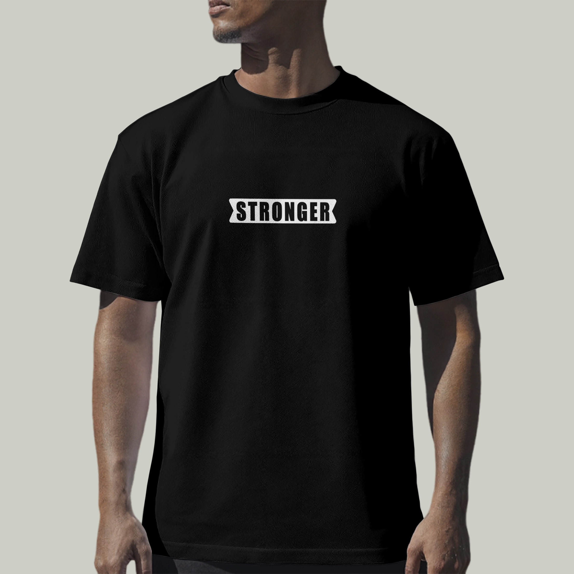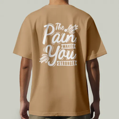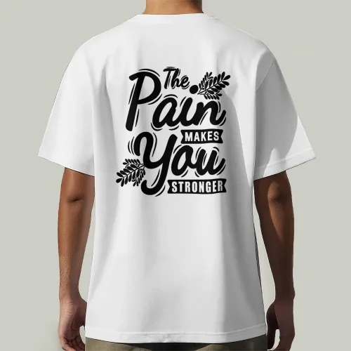 واجه الألم بقوة. تيشيرت "stronger" بطباعة أمامية بسيطة تحمل كلمة واحدة مليئة بالمعنى، ومع رسالة محفّزة على الظهر: "The pain makes you stronger"، عشان تفضل فاكر دايمًا إن كل تحدي بيقوّيك.