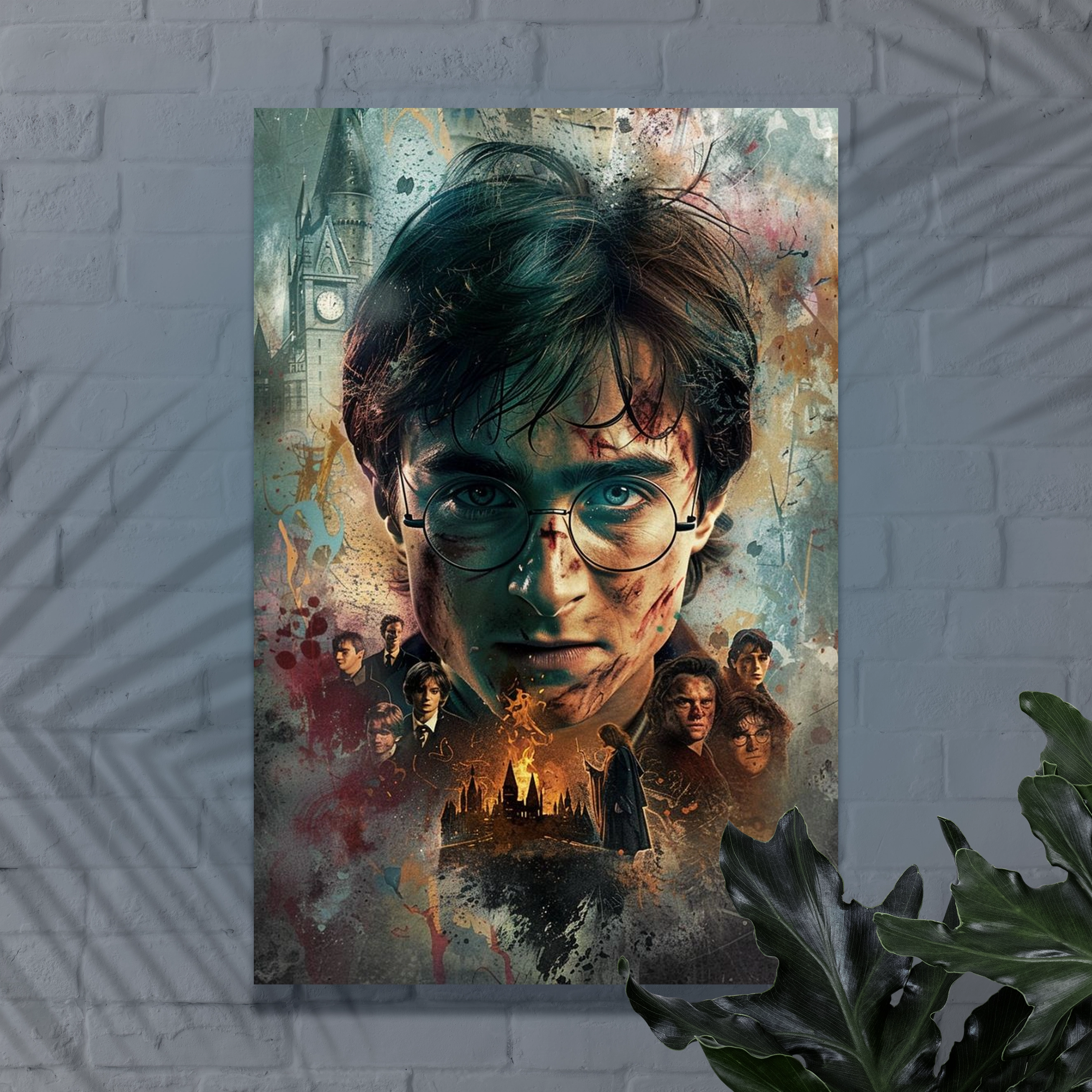بوستر فني مميز مستوحى من عالم هاري بوتر، يصوّر لحظة أيقونية بأسلوب رسومي ساحر. التصميم يحتفي بشخصية ..